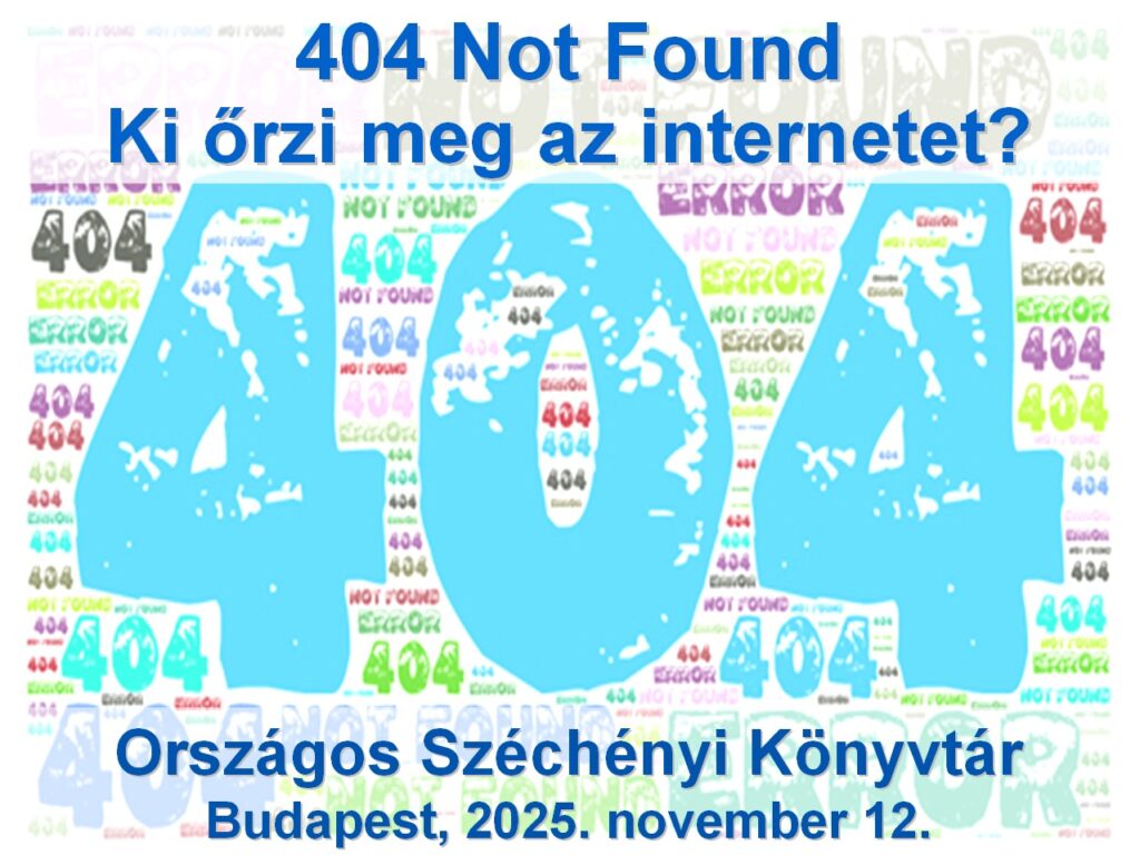 A Magyar Nemzeti Múzeum Közgyűjteményi Központ Országos Széchényi Könyvtár (a továbbiakban: MNMKK OSZK) Digitális Bölcsészeti Központja 2025. november 12-én tartotta meg az internetes tartalmak archiválásával, tágabban a digitális megőrzéssel foglalkozó éves rendezvényét, az immár kilencedik 404 Not Found – Ki őrzi meg az internetet? című konferenciát és workshopot. Az idei rendezvény kiemelt témája a webarchívum mint adat volt, a tervezett előadások majd mindegyike ehhez kapcsolódott. A Skót Nemzeti Könyvtárral közösen elnyert CENL-pályázat keretében Budapesten tartózkodó kollégák, továbbá a könyvtár kutató ösztöndíjasa az általuk végzett tevékenységről és a skót webarchívum metaadatainak hasznosulásáról beszéltek. A Nemzeti Audiovizuális Archívum, valamint az MTA Könyvtár és Információs Központ a webtartalom archiválásának speciális változatait mutatták be. Az ELTE Nyelvtudományi Kutatóközpont az archivált webes tartalom magyar nyelvi modell fejlesztésében való felhasználásáról tartott előadást. Végül az MNMKK OSZK munkatársai a webarchiválási csoport éves tevékenységéről és a webarchívumban levő adatok megoszlásáról, valamint a hírportálok napi szintű mentésének megújításáról tájékoztatták a résztvevőket. Az utóbbi témához kapcsolódott a délutáni workshop, amelynek keretében a Browsertrix crawler használatába vezették be az érdeklődőket.